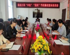 为进一步严明党的纪律,持续贯彻落实中央八项规定精神,不断推动我局全面从严治党和作风建设走深走实。9月8日,县统计局召开“中秋、国庆”节前廉政集体谈话会,局全体干部职工参加会议。