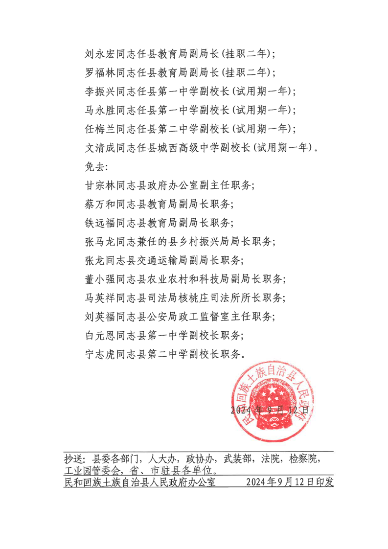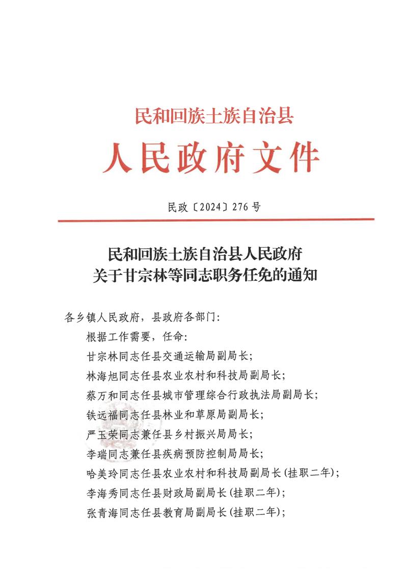 民和回族土族自治县人民政府关于甘宗林等同志职务任免的通知