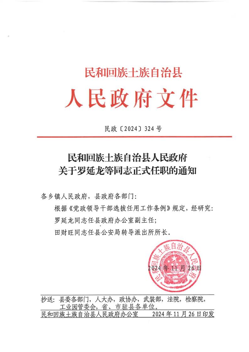 民和回族土族自治县人民政府关于罗延龙等同志正式任职的通知