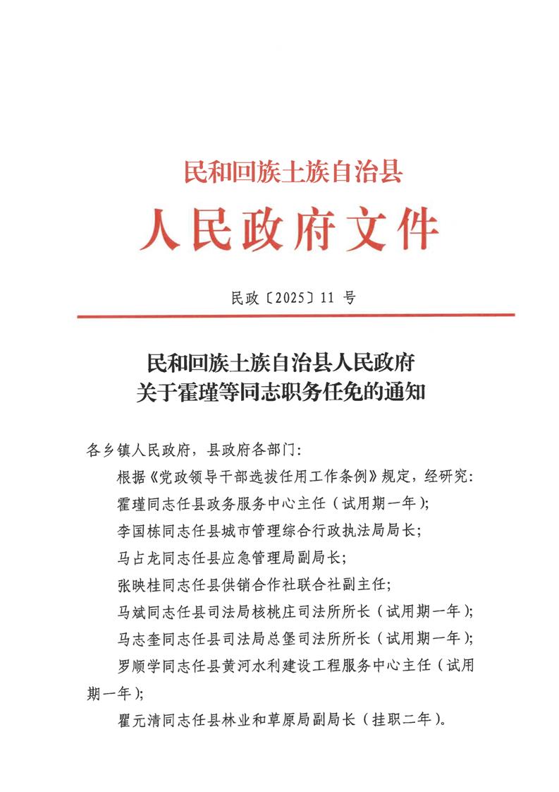 民和回族土族自治县人民政府关于霍瑾等同志职务任免的通知