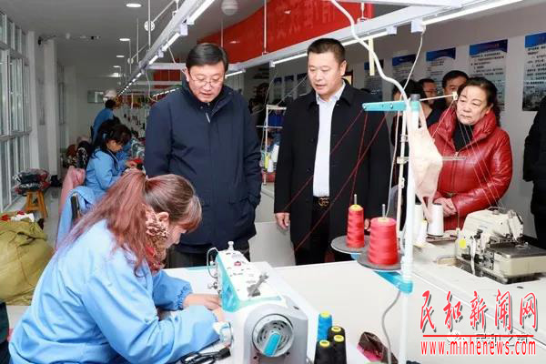图为县委书记杨海林(左一)在北山扶贫车间了解情况