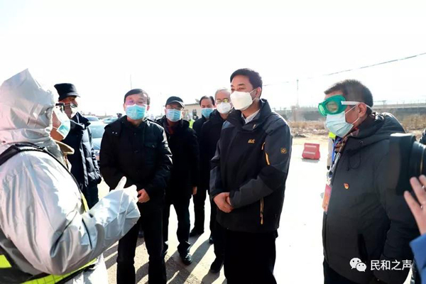 图为省委常委、副省长严金海来民和县疫情防控第一线实地督导疫病防控工作